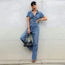 ✔ Bekväm och andningsbar: Tillverkad av denim ger jumpsuiten både hållbarhet och andningsförmåga, vilket gör den bekväm att bära hela dagen i olika väderförhållanden.